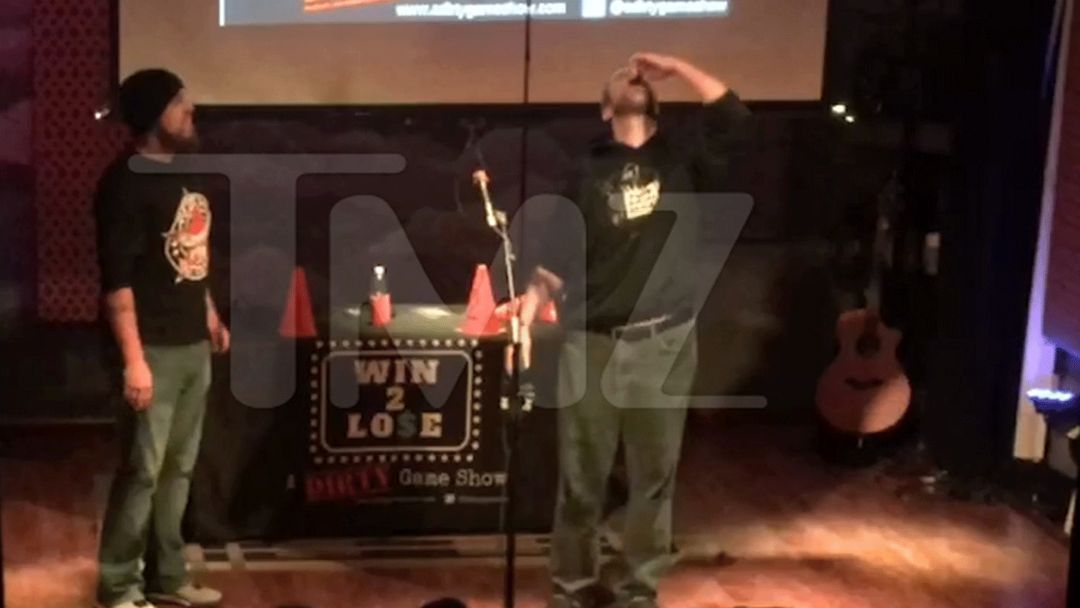 The challenge was to take a shot -- but it was 50/50 odds whether it would be bourbon or someone's chewing tobacco spit. It didn't seem to matter to him, though ... as long as it resulted in the audience buying some of his merch.