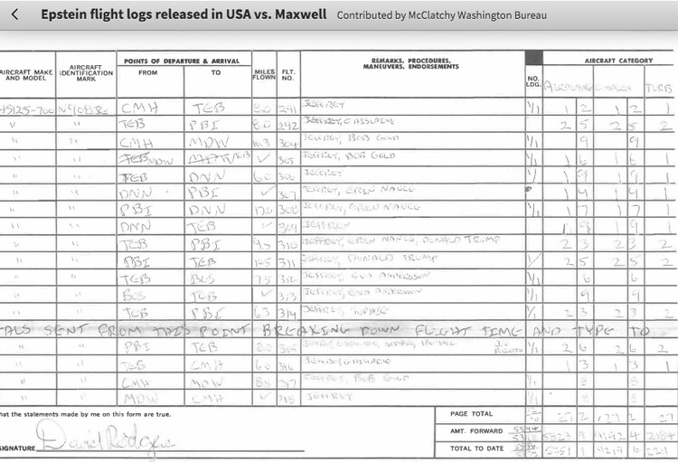Personal flight logs kept by one of Epstein's pilots -- which surfaced in separate lawsuits against Epstein -- showed that Clinton and his entourage had flown extensively on Epstein's jumbo-jet to international destinations such as Paris, Bangkok and Brunei in 2002 and 2003. But none of the available records included the former president on a trip to Epstein's island.
