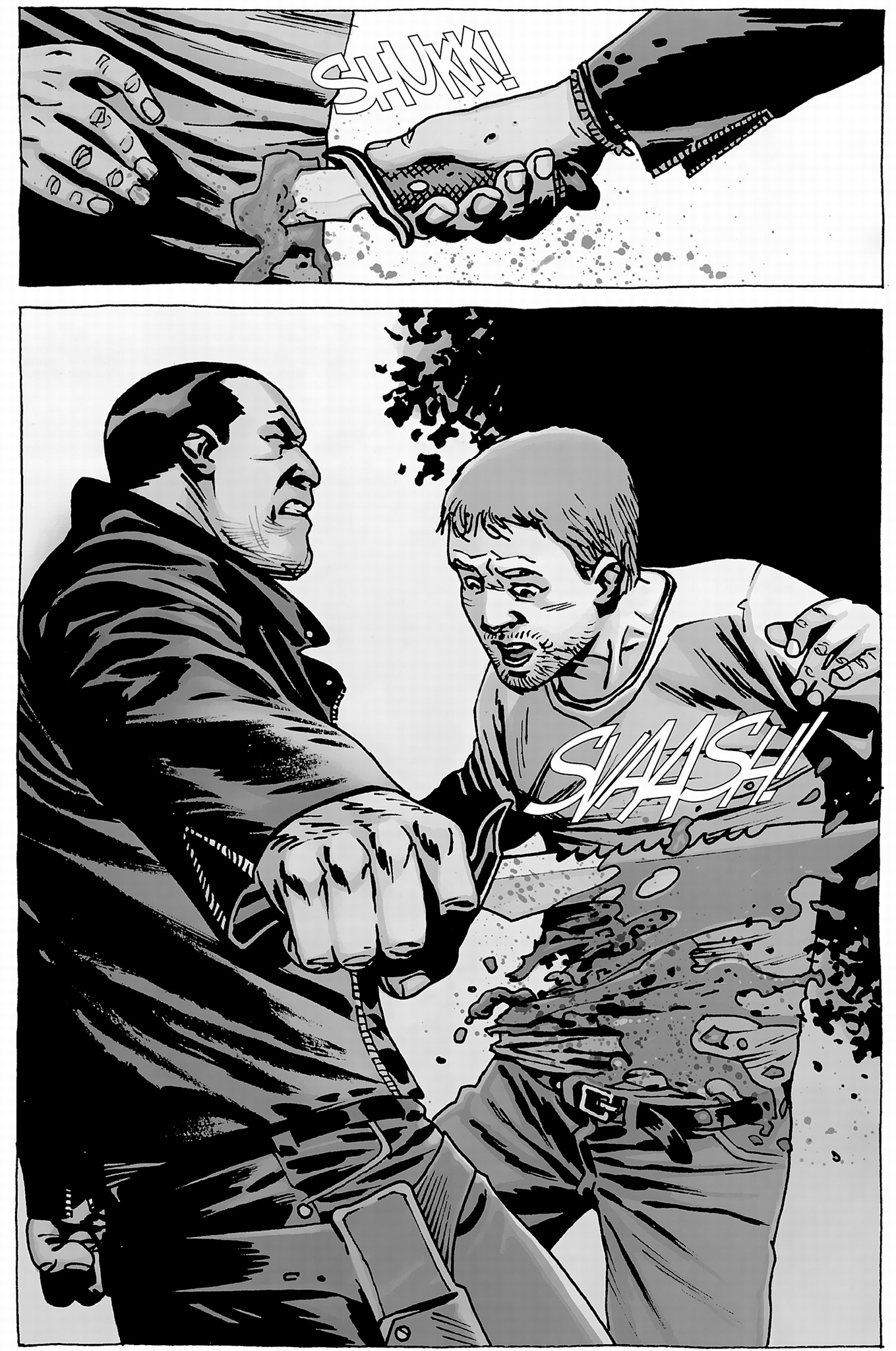because the people in Negans crew can only appear tough when he is around.If this man had a gun. why is he afraid of a man with a pipe?